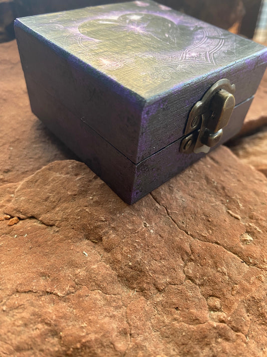 This collection consists beautiful hand painted wood boxes with or without genuine crystal. Each is unique and a one of a kind hand painted box embellished with a commercially licensed or AI image I specifically created or sought out on the cover to achieve the cohesive vision I had in mind the melding of vision to reality. A perfect gift for that someone special or for yourself.