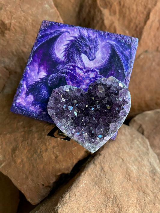 Timber & Stone Enchanted Keepsakes- Dragon's Amethyst Heart