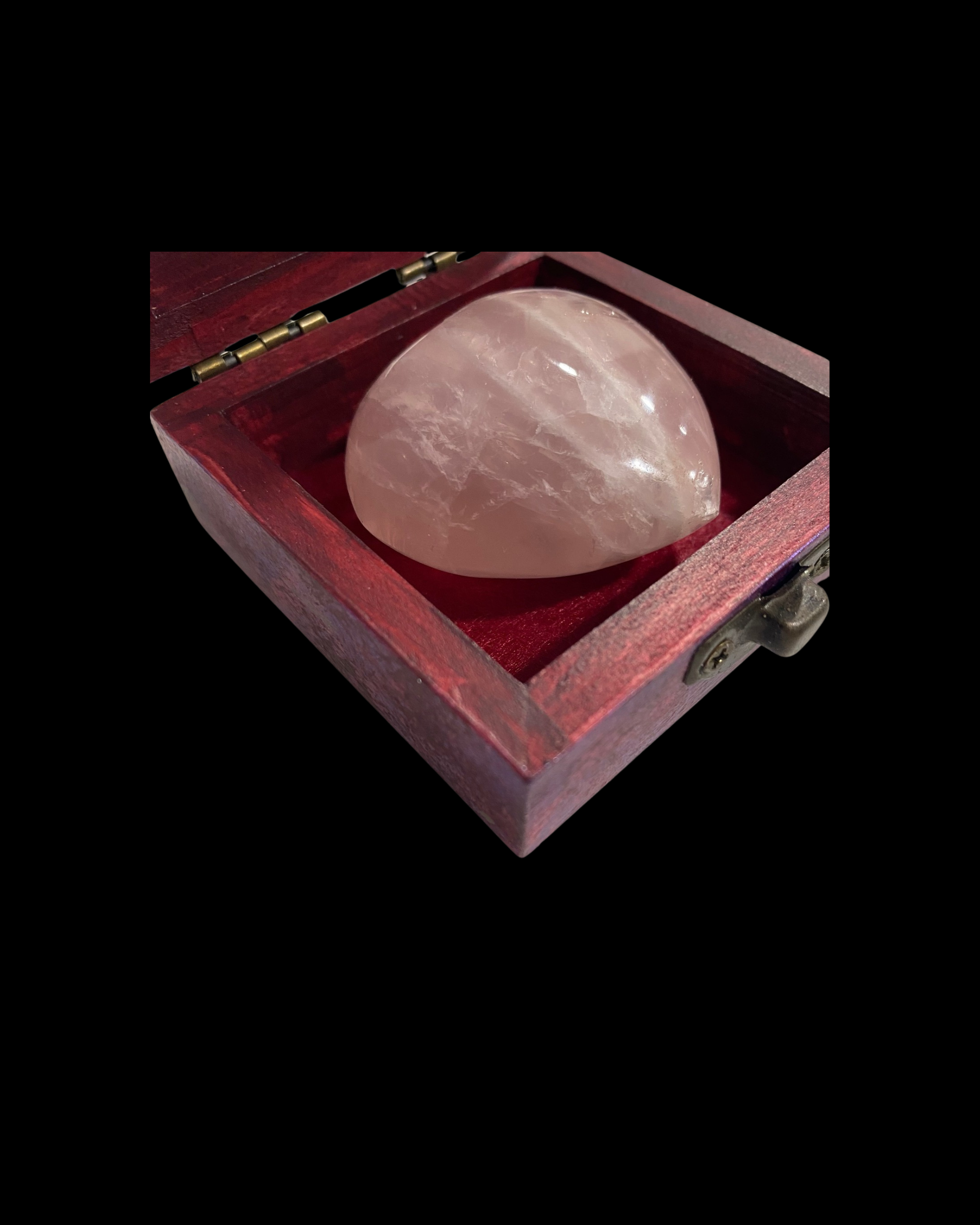 Soft yet powerful, this handcrafted wooden keepsake box features a romantic vintage-style image of a pink dragon gently holding a rose quartz heart. The artwork I created using AI to specifically coordinate with the beautiful Rose Quartz Heart Crystals. It symbolizes love, protection, and emotional strength, blending mythic energy with the gentle, heart-centered nature of rose quartz.